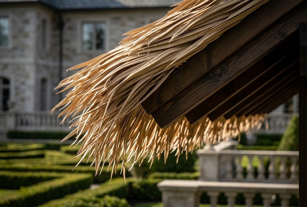 You can use them on a thatch roof for pergolas, pavilions, beach bars, and resort entrances. Moreover, they fit themed landscapes and outdoor dining zones. If you want the charm of thatched roofing with easier maintenance, this option works well.