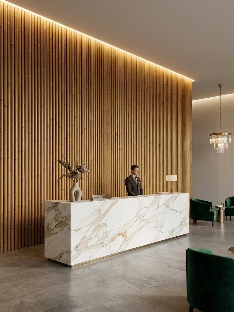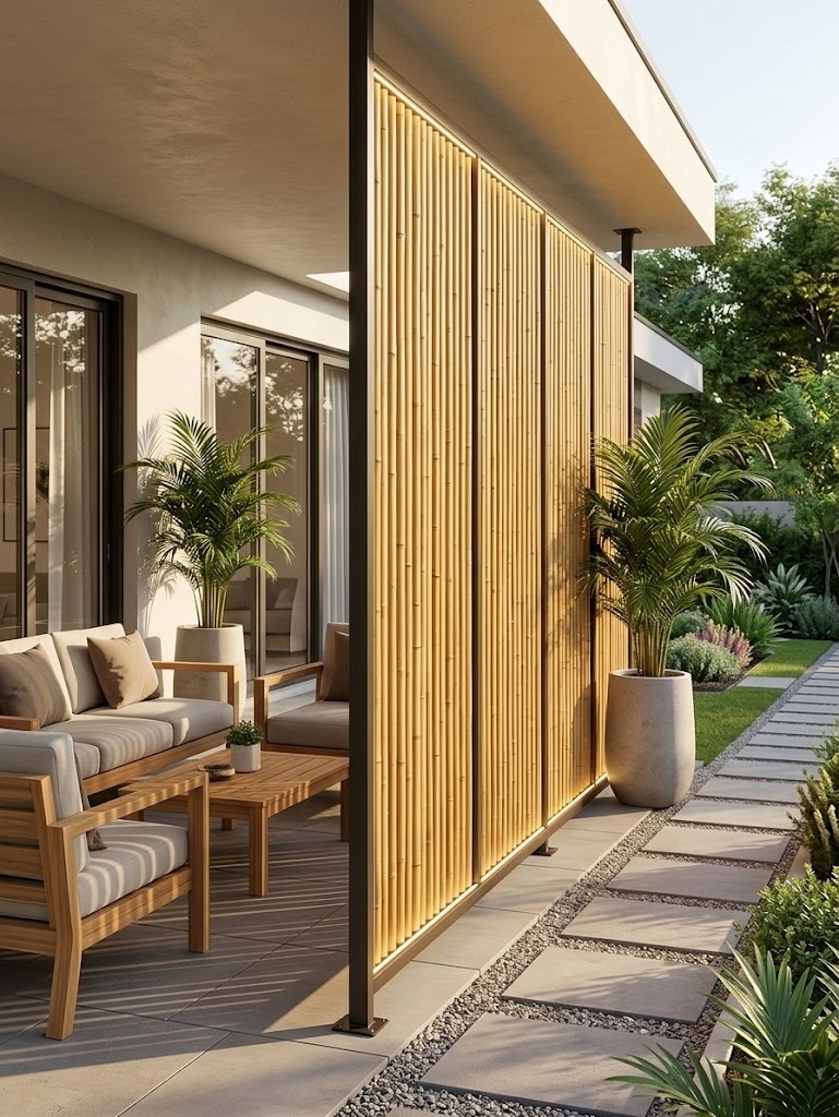 You can also use the panels as a bamboo wall finish for courtyards, entry features, and hospitality spaces. Meanwhile, bamboo wall panels work well for accent zones behind seating, reception areas, or walkway screens. Consequently, you get a consistent rhythm across larger surfaces without the variation common in natural bamboo.