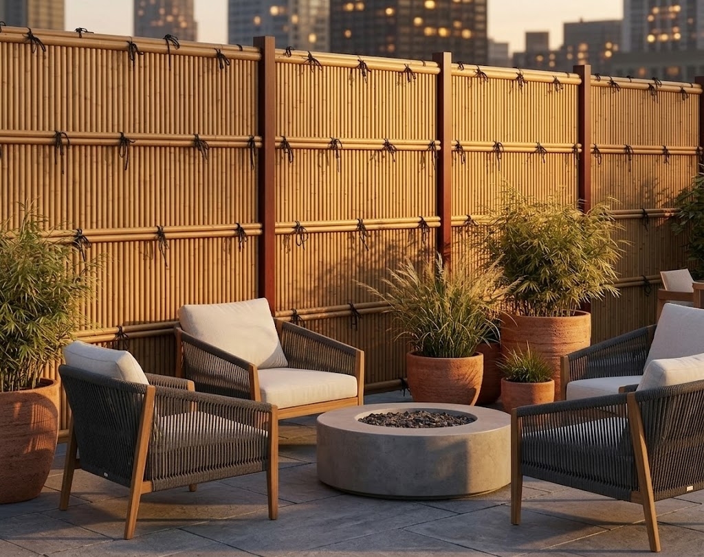 Use it as a bamboo privacy fence to reduce unwanted sightlines. First, it creates comfortable zones for dining or lounging. Next, it defines circulation paths around gardens and terraces. Meanwhile, the bamboo-inspired texture keeps the setting warm and natural.