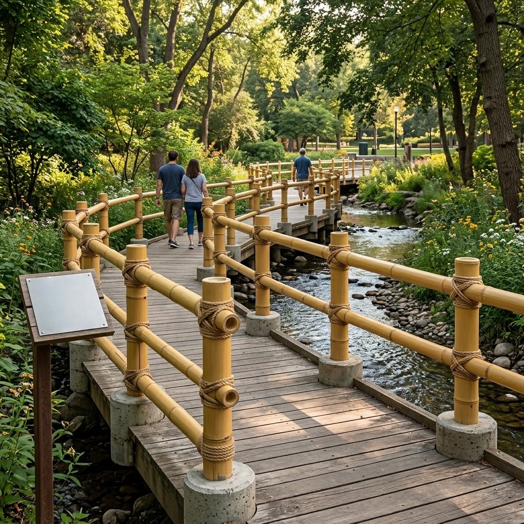 A composite bamboo pole helps keep spacing consistent. Moreover, it supports clean sightlines along long runs. Therefore, it’s a practical choice for modern bamboo fence layouts in gardens, parks, and resorts.