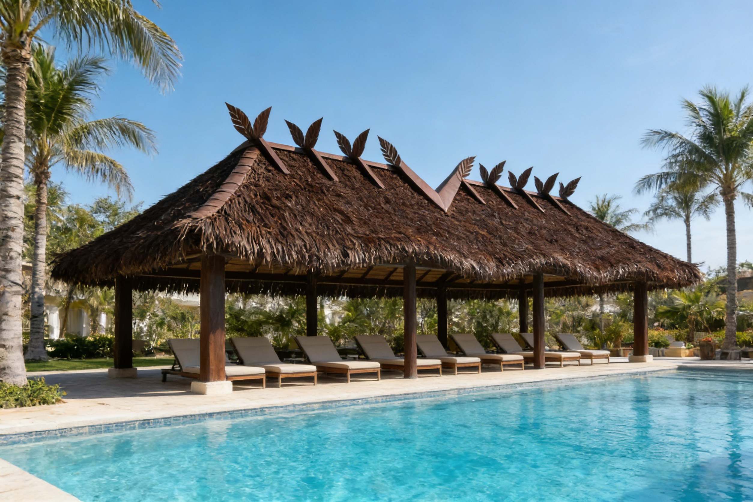 • Pool bars, cabanas & sun shelters: improves the finished look and durability of thatched roof structures.