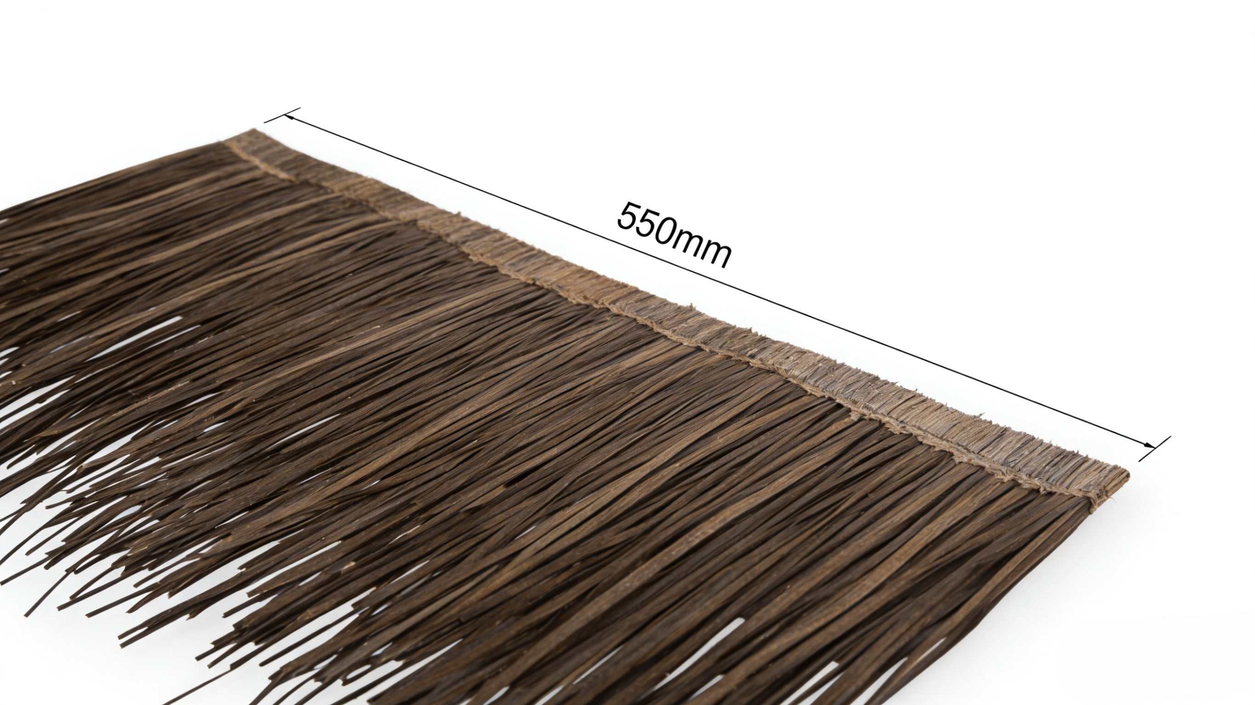 Full panel of thin reed thatch laid flat on a white surface, 550mm length clearly indicated, deep brown color, neat arrangement of strands, soft studio lightingSpecs (quick reference)